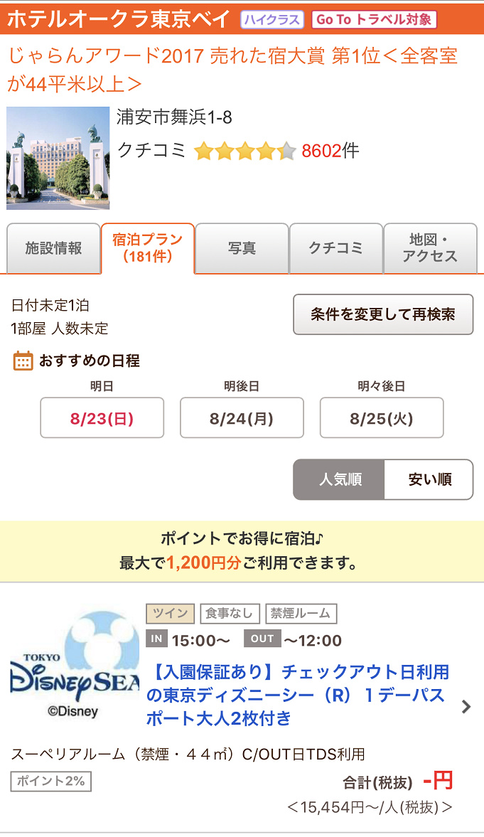 Gotoトラベルキャンペーン ディズニーチケット付きプランはこのホテルツアーが超おすすめ すけすけのマイル乞食